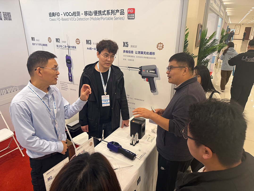 In the technical equipment exhibition area held concurrently with the conference, Aoma Intelligent’s booth became a focal point with its differentiated product matrix. All four star products were developed to address the pain points of VOCs fugitive leakage detection in the petroleum and petrochemical industry, showcasing innovative applications of FID (Flame Ionization Detector) technology:
